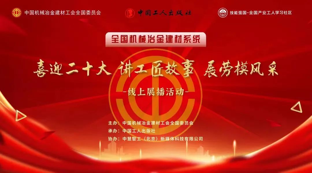 为迎接党的二十大胜利召开,,,,,,弘扬先进、勉励立异,,,,,,营造劳动庆幸的优异气氛,,,,,,近期,,,,,,由中国机械冶金建材工会主理、中国工人出书社承办、中慧智工(北京)新媒体科技有限公司协办的“喜迎二十大 讲工匠故事 展劳模风范”线上展播运动专区正式上线。。。。。。。